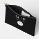Minimal & Elegant Black & White Logo Business Accessoires Pouch Dieses elegante, moderne Accessoire Pouch Hintergrund verfügt über ein einfaches schwarz-weiß minimalistisches Textdesign, mit Ihren Initialen oder Monogramm.