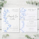 Elemente: eine elegante Weinrebe im Stil der Vintagen Porzellanmalerei. Namen erscheinen in einem modernen Skript; andere Details in den klassischen Serif Schriftartes Farben: blau, Porzellan blau, delft blau, französisch blau, grau. Themen: elegant, modern, minimalistisch, Garten, subtil, leicht, luftig, zeitlos, Vintag. Sammlung: Minimale Elegante Porzellan Floral Chinoiserie Hochzeitskollektion Art: Tischkarte