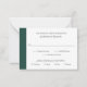 Moderne Wedding Mini RSVP Card mit einer feinen smaragdgrünen Band entlang der links Seite. Die Vorlage bietet Text in einer Kombination aus einem klassischen Serif-Schriftart, einem modernen Serif-Schriftart und einem eleganten Skript. Auf der Rückseite befindet sich neben dem links Band ein Monogramm. Dieses einfache und minimale Design ist ideal für eine traditionelle, formelle Hochzeit.