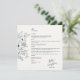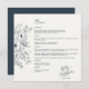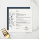 Minimal Floral Botanica Navy Blau auf Weiße Hochze Menükarte