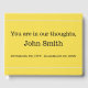 Dieses angesehene Beerdigung-/Gedenkbuch enthält die Meldung "Du bist in unseren Gedanken", den personalisierten Namen und das Geburtsdatum/das Todesdatum des weitergegebenen Individuums. Es könnte genutzt werden, um wohlwollende Wünsche für die Familie und Freunde von jemandem zu erfassen, der vor kurzem verstorben ist.