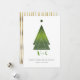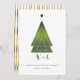 Modernes und festliches, geometrisch grünes Weihnachtsbaum Weihnachten Grußkarte mit goldenen Farbstreifen auf der Rückseite des Weihnachtsbaumes Customize mit Gruß und Namen für die Weihnachtszeit