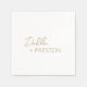 Moderne Imitate goldene Hochzeitsnapkins mit einem schlichten und minimalen Design mit dem Namen der Braut in einem eleganten Drehbuch und dem Namen des Bräutigams in einem zeitgenössischen Sans Serif Schriftart. Diese minimalistischen Servietten sind eine gute Ergänzung zu Ihrer Hochzeitsfeier, Ihrer Verlobungsfeier oder Ihrem Brautparty.