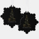 Das Design zeichnet sich durch einen minimalistischen goldenen Weihnachtsbaum auf einem schwarzen Hintergrund mit moderner Typografie aus. Einfache, stilvolle Urlaubskarte mit Schneeflocken in Schwarz-Weiß-Schrift. Personalisieren Sie es mit Ihrem Familiennamen und Jahr. Einfach zu bearbeiten. Ideal für eine festliche Saison.
