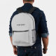 Easily personalize this simple and cool backpack adding your name or custom text. A cool and modern design in minimalist light gray eaturing clear sans serif font, for a modern, professional and edgy look, perfect as custom gift for college students, high school, kids. The backpack can be customized in any color and any font. No minimum.