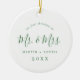 Dieses minimalgrüne, frisch vermählte erste Weihnachtsgeschmack Keramik Foto ist die perfekte Weihnachtsbaumdekoration. Das Design besticht durch klassisch grüne und weiße Typografie gepaart mit einem rustikalen und dennoch eleganten Script-Schriftart mit handgeschriebenem Stil. Dieser Sake-Ornament lautet "unser erstes Weihnachten als mehr und mehr". Personalisieren Sie die Front mit Ihren Namen und das Jahr. Personalisieren Sie den Rücken mit Ihrem Lieblings-Hochzeitsfest-Foto.