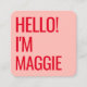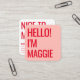 Minimal Hello | Modern Clean Simple Name Red Pink Quadratische Visitenkarte
