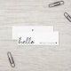 Ein minimales Mini-Visitenkartendesign mit einem stilvollen handgeschriebenen Skript großen typografischen Zitat "hello" gepaart mit Ihrem eigenen Namen und einem einfachen schwarzen Herz. In einem modernen, minimalistischen Stil in reinem Schwarz-Weiß gestaltet. Das perfekte personalisierte Geschenk oder Accessoire für jedes Jahr!