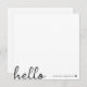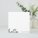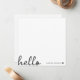 Ein minimales quadratisches Kartendesign mit einem stilvollen handgeschriebenen Skript großes typografisches Zitat "hello" gepaart mit Ihrem eigenen Namen und einem einfachen schwarzen Herz. In einem modernen, minimalistischen Stil in reinem Schwarz-Weiß gestaltet. Das perfekte personalisierte Geschenk oder Accessoire für jedes Jahr!