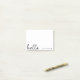 Ein minimales Post-it Note Design mit einem stilvollen handgeschriebenen Skript großen typografischen Zitat "hello" gepaart mit Ihrem eigenen Namen und einem einfachen schwarzen Herz. In einem modernen, minimalistischen Stil in reinem Schwarz-Weiß gestaltet. Das perfekte personalisierte Geschenk oder Accessoire für jedes Jahr!