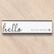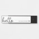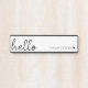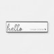 Ein minimales Türzeichendesign mit einem stilvollen handgeschriebenen Schrift großen typografischen Zitat "hello" gepaart mit Ihrem eigenen Namen und einem einfachen schwarzen Herz. In einem modernen, minimalistischen Stil in reinem Schwarz-Weiß gestaltet. Das perfekte personalisierte Geschenk oder Accessoire für jedes Jahr!