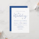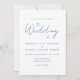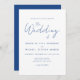 Diese einfache, moderne Hochzeitseinladung enthält indigoblauen Text auf weißem Hintergrund, mit den Worten "die Hochzeit von" in stilvoller handgeschriebener Kalligrafie. Fügen Sie die Namen der Braut und Bräutigam und Hochzeitsdetails in blauen Sans Serif Schriftart. Die Rückseite ist massiv blau.