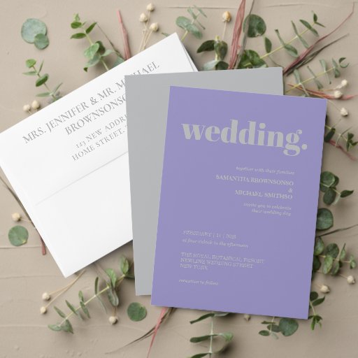 Minimal Lavender Silver Simple Wedding Einladung