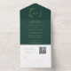 Minimal Leaf | Gold and Emerald QR Code Wedding All In One Einladung