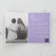Moderner Lavendel / lila gefaltete Hochzeitseinladung mit einem einfachen und minimalen Design mit dem Namen der Braut in einem eleganten Drehbuch und dem Namen des Bräutigams in einem zeitgenössischen serifenlosen Schriftart. Unten unten rechts finden Sie Ihre Veranstaltungsdetails in minimalistischem Layout. Die Innenseite enthält Ihr Lieblings-Foto und Ihre zusätzlichen Details, einschließlich eines optionalen QR-Codes (wenn Sie es vorziehen, kann der QR-Code im Entwurfsbearbeitungsprogramm entfernt werden). Die Rückseite hat zwei weitere optionale Abschnitte für weitere Informationen.