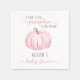 Diese niedlichen, minimalen Babyduschen-Servietten verfügen über eine pastellrosa Wasserfarbe eines Kürbis und "ein süßer Kürbis ist auf ihrem Weg", "Babydusche" und den Namen der Mutter, der in einer Mischung aus einem stilvollen rosa Drehbuch und handgeschriebener Typografie geschrieben ist.