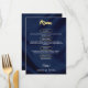 Minimal Luxury Navy Blue und Gold Script Wedding Menükarte