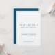 Moderne sehr einfache grafische Marine blau-weiß vertikale Hochzeit speichern Sie die Datumskarte. Ideal für eine einfache, minimale oder moderne Hochzeit. Bearbeiten Sie diese Save the Date Karte mit Ihren eigenen Namen und Hochzeitsdetails. Weitere passende Elemente verfügbar. Entworfen von www.mylittleedenweddings.com