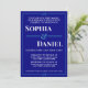 A clean, modern design featuring a classic navy blue background, crisp white typography, and a cool blue accent color.