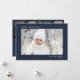 Elegante blaue Urlaubskarte mit einem minimalen modernen Design, das Ihr Foto und "Frohe Weihnachten", Ihren Namen und das Jahr in schlicht weißer Typografie. Fügen Sie zwei zusätzliche Fotos auf der Rückseite, einen personalisierten Gruß und Ihre Vornamen.