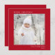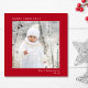 Elegante, rote, quadratische Urlaubskarte mit einem minimalen Design, das Ihr Foto, und "Frohe Weihnachten", Ihr Name und das Jahr in schlichter, moderner weißer Typografie.