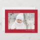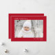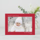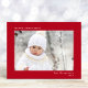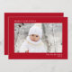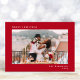 Elegante, rote Urlaubskarte mit einem minimalen Design mit Ihrem Foto, und "Frohe Weihnachten", Ihr Name und das Jahr in schlichter, moderner weißer Typografie.