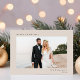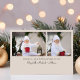 Elegante leichte Taupe-Urlaubskarte mit minimalem modernem Design mit Ihrem Foto und "Frohe Weihnachten", Ihrem Familiennamen und dem Jahr in einfacher Typografie. Fügen Sie zwei zusätzliche Fotos auf der Rückseite, einen personalisierten Gruß und Ihre Vornamen.