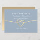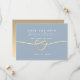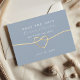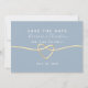 Elegante, minimale, moderne Typografie staubige blaue Hochzeit speichern die Datums-Einladung, mit goldenem Seil Herz und einfache handgeschriebene Skripte.