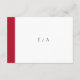 Moderne rote und schwarze QR Code Hochzeit RSVP Karte mit einer fett roten Band entlang der links Seite. Die Vorlage bietet Text in einer Kombination aus einem klassischen Serif-Schriftart, einem modernen Serif-Schriftart und einem eleganten Skript. Auf der Rückseite befindet sich neben dem links Band ein Monogramm. Dieses einfache und minimale Design ist ideal für eine traditionelle, formelle Hochzeit.