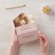 Minimal moderne Hochzeitseinladung in Rosa mit einem Foto auf der Innenseite der Kartenklappe, eine Mischung aus einfacher Typografie und einem eleganten Drehbuch mit Wimpern und einer abreißenden UAWG-Postkarte, die eine bequeme, umschlagfreie Antwort Ihrer Gäste bietet.