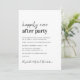 Minimal moderne Einladung für einen Empfang oder ein Party nach Ihrer privaten Hochzeit oder Entdeckung mit "Happily Ever After Party" in einer Mischung aus zeitgenössischer Schrift und kühner trendiger Typografie. Personalisieren Sie Ihre Nachricht und Einladung und fügen Sie Ihre Namen in ein signaturähnliches Skript ein. Auf der Rückseite laden Sie Ihr Foto hoch und geben Sie Ihre Website-Adresse ein, um einen QR-Code für Ihre Gäste zu erstellen, um online zu scannen und zusätzliche Hochzeitsdetails wie Anleitungen und Unterkünfte zu erhalten.