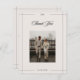 Minimal moderne Hochzeitskarte mit einem feinen Rahmen, eleganter Typografie und Ihrem Lieblings-Foto. Auf der Rückseite ist eine herzliche Dankesbotschaft, die Sie mit Ihren eigenen Worten behalten oder ersetzen können. Ideal für Paare, die zeitlose Eleganz, modernes Design und persönliche Touchs Liebe haben.