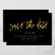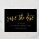 Dieses moderne und elegante Ankündigung Datum freihalten mit einem schicken schwarzen Hintergrund, dem Gruß "Save the Date" und Ihrem Hochzeitstermin in Goldfolie, mit Ihren Infos in Weiß. Sie können dieses Design noch weiter anpassen, indem Sie ein anderes Foto oder einen zusätzlichen Text auf der Rückseite hinzufügen. Die Folie ist in Gold, Silber oder Rose erhältlich und strahlt absolut!