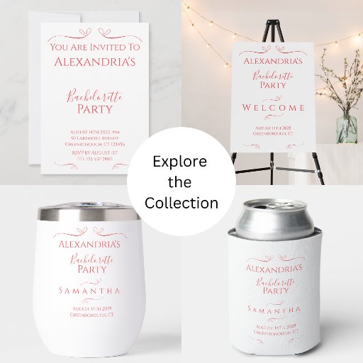 Dies ist ein minimales, Junggeselinnen-Abschied-Design. Es ist in trendigem Rot / Rosa mit stylischer Typografie / Text. Es hat die Nachricht "Alexandria's Junggeselinnen-Abschied", und Platz für Sie, um Ihren Gast Namen, Party Datum und Ort hinzuzufügen. Der Text ist von stilistischen, wirbeligen Herzen gerahmt. Dieses elegante und moderne Design eignet sich perfekt für Ihre Junggeselinnen-Abschied-Feier und ist ideal für Gastgeschenke oder Accessoires. Geben Sie einfach Ihre Daten ein, indem Sie dieses Textfeld personalisieren. Hier können Sie auch die Erholung des Textes ändern, wenn Sie gewollt werden. Um die Farbe oder den Schriftart zu ändern, Karo aus dem Entwurfsbearbeitungsprogramm. Wenn Sie Hilfe bei der Personalisierung oder für ein benutzerdefiniertes Design benötigen, kontaktieren Sie mich per zazzle Chat oder E-Mail: ursuladawnmoon@gmail.com