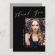 Diese minimale, moderne 1 Foto Abschluss "Danke"-Karte, enthält Designelemente moderner Texte, die mit elegantem Kalligrafiebeschreiben verschmolzen sind. Ihr Foto wird auf der Vorderseite der Karte angezeigt, während die Rückseite der Karte personalisierten Platz für eine Dankeschön-Nachricht bietet oder leer verlassen werden kann, wenn Sie Ihre Nachricht handschreiben möchten. Die Hintergründe sind vorn schwarz und hinten silbergrau oder lassen sich leicht an die Farben Ihrer Wahl anpassen.