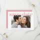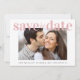 Eine frische und fröhliche Save the Date Hochzeitsankündigung. "Save the Date" steht in fett, sauber und modern in Rosa-Rosa-Schrift auf der Oberseite Ihres Lieblings-Verlobung-Fotos. Unter Ihnen können Sie Ihre Namen, Ihr Hochzeitstermin und Ihren Ort personalisieren. Auf der Rückseite können Sie Ihre Save the Date Informationen in einer koordinierenden weißen Typografie mit einem hellrot-rosa Hintergrund detaillierter personalisieren.