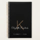 Moderner personalisierter schwarzer Planer mit Ihrem Initial und Namen in minimaler Goldtypografie und weißer Schrift. Geben Sie auf Wunsch einen Titel und ein Jahr ein.