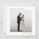 Elegante quadratische Urlaubskarte für Neuvermählte mit einem minimalen Design, das Ihr Foto, "Verheiratete Weihnachten", Ihren Namen und das Jahr in schlichter moderner Typografie zeigt.