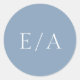 Moderner, staubblauer Hochzeitsaufkleber mit minimalem Design mit dem Monogramm in einem klassischen Serif-Schriftart. Dieses einfache Design ist ideal für eine traditionelle oder formelle Hochzeitssuite. Verwenden Sie diese Aufkleber als Umschlag Aufkleber oder für Ihre Gastgeschenke Hochzeiten.