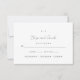 Diese kleine schwarz-weiße Hochzeitskarte verfügt über ein einfaches Monogramm und ein uAwg mit Auswahl der Speisen.