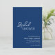 Moderne marineblaue Brautdusche mit schlichtem und minimalistischem Design, elegantem Drehbuch und zeitgemäßem serifenem Schriftart. Unten unten rechts finden Sie Ihre Veranstaltungsdetails in minimalistischem Layout.