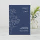 Minimal Navy Blue White Wildblumen Hochzeit Einladung
