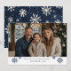 Mit dieser minimalistischen Weihnachtskarte mit marineblauen Schneeflockenakzenten am unteren Rand können Sie feierliche Feierlichkeiten genießen. Der weiße Hintergrund hebt Ihr Foto und Ihre personalisierte Begrüßung hervor und schafft so einen zeitlosen Urlaubssinn. Ideal, um warme Wünsche mit einer modernen und eleganten Winter-Touch zu vermitteln.