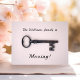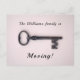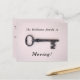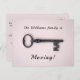 Zeigt einen antiken Skelettschlüssel auf einem rosa Hintergrund. Der erste Text lautet "The Williams family is Moving!" und kann individuell angepasst werden. Die Kontaktinformationen auf der Rückseite können auf Ihre neue Adresse geändert werden. Minimal, sauber, weiblich. Für den Umzug auf eine neue Zuhause, mit Ihrer neuen Adresse, Telefon, Nummer und anderen Kontaktinformationen.