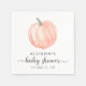 Diese minimalen geschlechtsneutralen Babyduschen verfügen über eine niedliche, orangefarbene Wasserfarbe eines Kürbchens, "Babydusche" in einem hübschen stylischen Drehbuch und den Namen und das Duschdatum der Mutter in moderner und handgeschriebener Typografie.