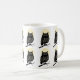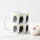 Bring the silent mystery of the night forest into your everyday life with this strikingly graphic owl mug. This modern and minimalist design features repeated silhouettes of a quiet owl against a backdrop of a subtle crescent moon. The strong black and white contrast creates a calm, contemporary piece of functional art.