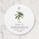 Minimal tropische Hochzeit danken Ihnen für Tags mit einer Single Aquarellpalme Abbildung auf einem klassischen weißen Hintergrund. Personalisieren Sie die Dankeschön-Nachricht, Namen und Datum mithilfe der einfachen Serif-Schriftart-Vorlage.