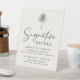 Bring tropical charm to your wedding bar with this elegant signature drinks pedestal sign featuring a single watercolor palm tree illustration at the top. Set against a soft ivory background, the design showcases “Signature Drinks” in a modern handwritten script paired with classic serif lettering for a timeless island-inspired look. This freestanding wedding bar sign is perfect for displaying on your bar or reception table. Personalize with your names and custom drink selections to create a stylish accent for your tropical, destination, or summer wedding.