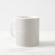 A modern minimalist personalized mug featuring a muted teal background, clean white lettering, and a subtle heart accent. Customized with a name, this design offers a calm, contemporary take on Valentine’s Day gifting while remaining perfect for everyday use.