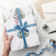 Minimal Pine Tree Merry Christmas Wrapping Paper featuring snowy pine trees and a delicate script font reading 'Merry Christmas'